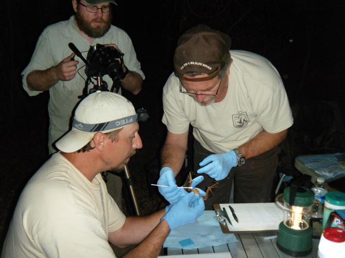 | Keywords: bats bat monitoring north carolina northcarolina u. s. fish and wildlife service usfishandwildlifeservice national wildlife refuge nationalwildliferefuge national wildlife refuge system nationalwildliferefugesystem Recent bat monitoring efforts by USFWS staff and partners at Alligator River and Roanoke River National Wildlife Refuges observed more than 40 bats from 6 different species including the threatened Northern Long-Eared bat. Bats were captured, examined, and tested for White-Nose Syndrome before being released back into the wild. Photo credit: Rose Railey/USFWS Recent bat monitoring efforts by USFWS staff and partners at Alligator River and Roanoke River National Wildlife Refuges observed more than 40 bats from 6 different species including the threatened Northern Long-Eared bat. Bats were captured, examined, and tested for White-Nose Syndrome before being released back into the wild. Photo credit: Rose Railey/USFWS |