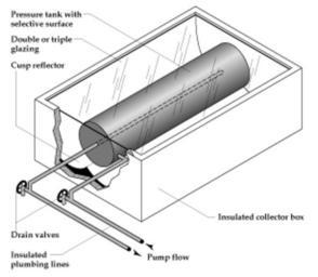 | Keywords: Batch solar thermal collector.gif en Schematic of a batch_solar_thermal collector This is a large version of a batch heater allowing the heating of allot of water before it is transferred to the storage tank Alternatively due to its size this thermal collector may also inmediatelly store all of the water itself for very small groups of people or for 1 person This picture provided as public domain here by the US Dept of Energy http //www eere energy gov/de/images/illust_solar_hotwater_batch gif KVDP 2009-09-07 PD-USGov Solar hot water panels |