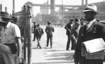 | Keywords: Bates 1941.jpg Leon Bates UAW leader handing out UAW ”United Auto Workers literature during the 1941 organizing drive at the Ford Motor Company - River Rouge plant - gate 4 on Miller Road Own work by uploader / from the collection of Leon Bates now in the custody of the Bates family Leon Bates 1941 GNU Ford River Rouge Complex AFL-CIO 1941 1941 in Michigan |