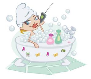 Keywords: bath bubbles cartoon cellphone clean comic characters communication female girl mobile phone tub wash woman