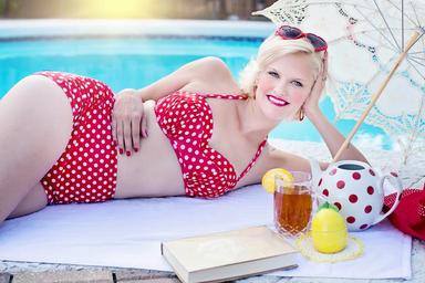 Keywords: bathing beauty poolside pool summer young attractive woman vacation relaxing sunbathing relaxation