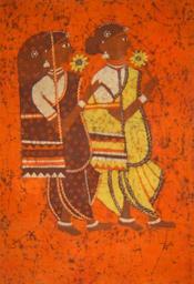 Keywords: Batik painting.jpg A photo of a Batik painting depicting two Indian women 2005-11-13 own assumed Pamri Batik Painting Portrait paintings of women at full length