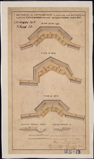 | Keywords: Batteries for Entrenchment on south side and Batteries on north side, Conowingo Bridge, Susquehannah (sic) River, Md.... - NARA - 305789.tif Scope and content General notes 305789 Local identifier 77-FORTS-DR145SHT13 War Department Office of the Chief of Engineers 1818 - 09/18/1947 Cartographic and Architectural Records Section Special Media Archives Services Division NWCS-C National Archives at College Park 8601 Adelphi Road College Park MD 20740-6001 ca date 1864 11 24 Record group Record Group 77 Records of the Office of the Chief of Engineers 1789 - 1999 Record group ARC 406 Fortifications Map File Plans of Military Forts compiled 1790 - 1941 Series ARC 305749 File unit File unit ARC Variant control numbers NAIL Control Number NWDNC-77-FORTS-DR145SHT13 yes Other versions <gallery> File Batteries_for_Entrenchment_on_south_side_and_Batteries_on_north_side _Conowingo_Bridge _Susquehannah_ sic _River _Md _-_NARA_-_305789 tif tif File Batteries_for_Entrenchment_on_south_side_and_Batteries_on_north_side _Conowingo_Bridge _Susquehannah_ sic _River _Md _-_NARA_-_305789 jpg jpg </gallery> NARA-cooperation PD-USGov Pennsylvania in the American Civil War Susquehanna River Gun emplacements Bridges in the United States completed in 1820 1820s bridges in Pennsylvania NARA TIF images with categorized JPGs |