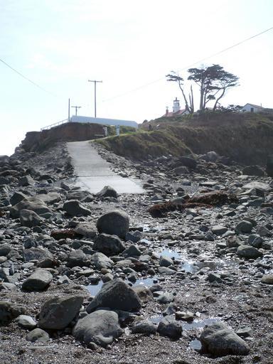 Keywords: BatteryPoint Sea Floor At High Tide.jpg 83001177 en The approach to Battery Park Lighthouse is by crossing the sea floor exposed only at low tide This photo shows where the walkway ends at the average high tide mark The lighthouse is visible next to the tree at the top of the tidal island original photo Ellin Beltz 2012-03-17 41 44 38 82 N 124 12 11 12 W region US Battery Point Lighthouse 2012 in California 20120317 Crescent City March 2012 in the United States 20120317 Crescent City Photographs taken on 2012-03-17 Crescent City Photographs by Ellin Beltz