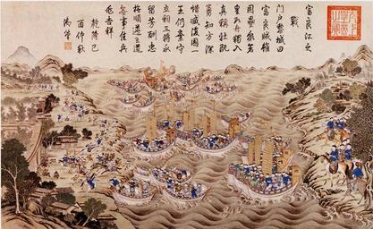 | Keywords: Battle at the River Phu-luong.jpg zh 清乾隆 平定安南得 之 富良江之戰 en Battle at the River Phu-luong a scene of the Chinese Campaign against Annam Vietnam 1788 - 1789 http //www battle-of-qurman com cn/e/hist htm late XVIII century A collaboration between Chinese and European painters The Jesuit missionaries involved in producing the drawings in China were Giuseppe Castiglione Jean-Denis Attiret Ignace Sichelbart and Jean Damascene The engravings were executed in Paris under the direction of Charles-Nicolas Cochin of the Académie Royal at the Court of Louis XVI and the individual engravers include Le Bas Aliamet Prevot Saint-Aubin Masquelier Choffard and Launay PD-Art Military of Qing China Battle of Ngọc Hồi-Đống Đa Paintings of the Qing Dynasty Paintings of junks ships |