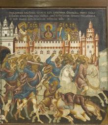 | Keywords: Battle between Novgorod and Suzdal (fresco) 04.jpg Ф еска Битва новго одцев с суздальцами 1742 1743 Я ославль Известковый г унт темпе а Из соб ания Госуда ственной Т етьяковской гале еи 1742 1743 Creator Unknown PD-Art Battle between Novgorod and Suzdal fresco GTG Exhibition Sainte Russie Moscow 2011 |