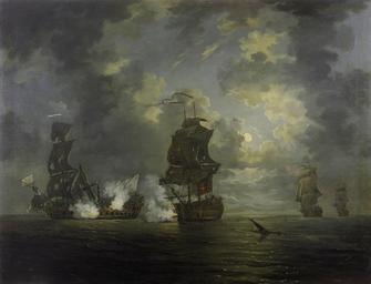 | Keywords: Battle of cartagena rowley.jpg Francis Swaine Francis Swaine 1725 “1782 en The 'Foudroyant' was a large and new 80-gun French flagship of a squadron under Admiral Duquesne On 28 February 1758 she was on her way to relieve the French Commodore de la Clue at Cartagena when she was intercepted by Admiral Osborn with three British ships of the line the 'Monmouth' and 'Hampton Court' both 64 guns and the 'Swiftsure' 70 guns century 18 oil canvas cm 71 12 91 44 National Maritime Museum London object history credit line National Maritime Museum Greenwich London Caird Collection accession number BHC0383 http //collections rmg co uk/collections/objects/11875 html Royal Museums Greenwich PD-Art-100 Francis Swaine Paintings in the National Maritime Museum London 1750s naval battles 18th-century paintings of naval battles 1758 Battle of Cartagena 1758 Conflicts in 1758 Foudroyant ship 1751 Naval battles involving Great Britain Naval battles involving France Monmouth ship 1667 Cartagena in art |