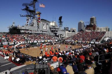 | Keywords: Battle on the Midway 121111-N-OB313-032.jpg en Syracuse University and San Diego State University face off onboard the flight deck of the USS Midway Museum the longest-serving U S Navy carrier during the Battle on the Midway basketball game Northrop Grumman played host to the inaugural Battle on the Midway basketball game that paid honor to active military reservists veterans and military families U S Navy photo by Mass Communication Specialist 1st Class T J Ortega/Released 2012-11-11 Petty Officer 1st Class Timothy Ortega https //www dvidshub net/image/781059 121111-N-OB313-032 2012-11-12 01 18 SAN DIEGO CA US PD-USGov-Military-Navy USS Midway Museum Images from DoD uploaded by Fæ |