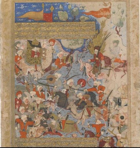 | Keywords: Battleofthecamel.JPG en Folio from a Rawdat al-safa Garden of felicity by Mirkhwand d 1498 ; verso Ali and Aisha at the Battle of the Camel; recto text 1571-1572 Safavid period Opaque watercolor ink and gold on paper H 41 3 W 27 6 cm Shiraz Iran 2014-07-10 16 45 29 http //www asia si edu/collections/singleObject cfm ObjectNumber S1986 238 Mirkhwand d 1498 PD-Art Uploaded with UploadWizard Muslim depictions of Muhammad Battle of the Camel | ||||