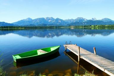 Keywords: bavaria allgäu lake mountains water nature germany summer leisure holiday recovery idyll horizontal in the free rest landscape blue morning rowing boat web boot pier boardwalk fishing boat