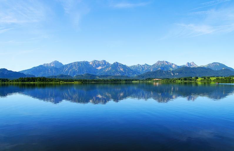 Keywords: bavaria allgäu lake mountains water nature germany summer leisure holiday recovery idyll horizontal in the free rest landscape blue morning