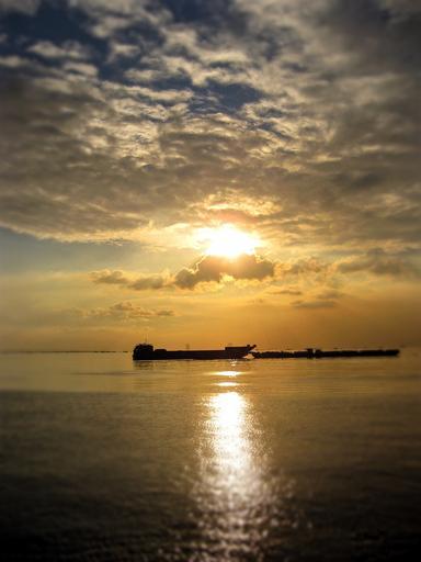 Keywords: bay boat sunset manila bay sun clouds sky scenic nature landscape sea water summer coast ship orange blue seascape view reflection light vessel harbor