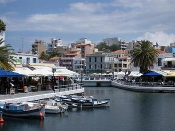 Keywords: bay island boats vessels platform jetty tourism cruise touristic city skyline buildings crete greece