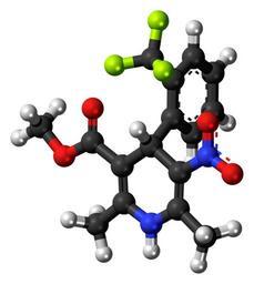| Keywords: Bay-K8644-3D-balls.png Ball-and-stick model of the Bay K8644 molecule a calcium channel agonist Colour code 505050 Carbon C black<br> F0F0F0 Hydrogen H white<br> F51E1E Oxygen O red<br> 3C50FA Nitrogen N blue<br> C8FA00 Yellow-green Fluorine F<br> 2011-06-13 own DS Visualizer Jynto talk Space-filling version cc-zero Carboxylate esters Methyl esters Nitro compounds Trifluoromethylbenzenes Images by Jynto Ball-and-stick models Dihydroazines | ||||