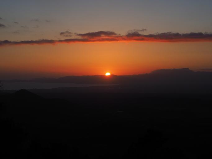 | Keywords: bay of palma palma sunset solar disk fireball sun evening hour view mountains sea clouds sky passage evening romantic romance yellow bright sunlight evening hours trees outlook monastery cura cura algaida santuari de nostra senyora de cura puig de randa balearic islands spain mallorca franciscan monastery place of pilgrimage mediterranean serra de tramuntana mountain range tramuntana | ||||