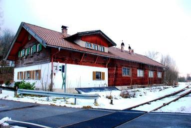 | Keywords: Bayrischzell Lokschuppen.JPG Ehemaliger Lokschuppen des Bahnhofs Bayrischzell Landkreis Miesbach Regierungsbezirk Oberbayern Bayern Gemeinsam mit dem Bahnhofsgebäude als Baudenkmal unter Aktennummer D-1-82-112-62 in der Bayerischen Denkmalliste aufgeführt own 2011-12-11 16 12 06 Rudolph Buch Bahnhof Bayrischzell Engine sheds in Germany Bayrischzell |