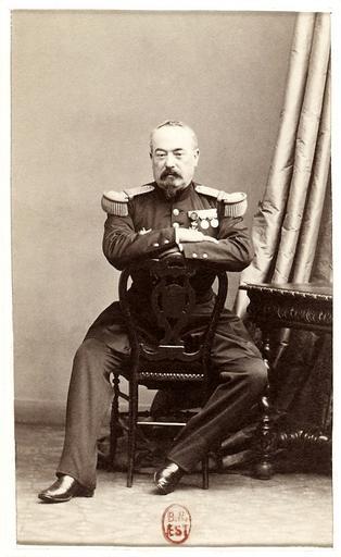 Keywords: Bazaine Disdéri BNF Gallica.jpg François Achille Bazaine 1811 - 1888 alors Maréchal de France Général en Chef de l'Armée du Rhin capitula à Metz en 1870 François Achille Bazaine 1811 - 1888 was marshal of France and General in Chief of the Armée du Rhin when he surrendered with all his army in Metz in 1870 1860 2013-04-12 for upload ARK-BNF Creator André Adolphe Eugène Disderi Upload stitch and restoration by Jebulon http //gallica bnf fr/ark /12148/btv1b8432966c/f10 item cleaning of dirt spots tears and scratches due to age Reduction of saturation increase of constrasts Size and crop With GIMP François Achille Bazaine photograph 12 24 17 April 2013 UTC Bazaine Disdéri BNF Gallica jpg PD-Art-100 Uploaded with UploadWizard François Achille Bazaine 19th-century portrait photographs of sitting men at full length Black and white portrait photographs of military people in uniform Chairs in portraits Curtains in art Tables in portrait photographs André Adolphe Eugène Disderi Valued images by Jebulon Valued images of people of France |