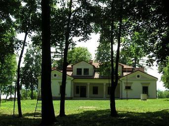 Keywords: Bażanówka - dwór Daniela i Marii z domu Ostaszewskiej Laskowskch.jpg Bażanówce Obecnie szkoła en Neoclassical Manor house and garden in Bażanówka Nowadays school Own Baliw 2008 Manor house in Bażanówka