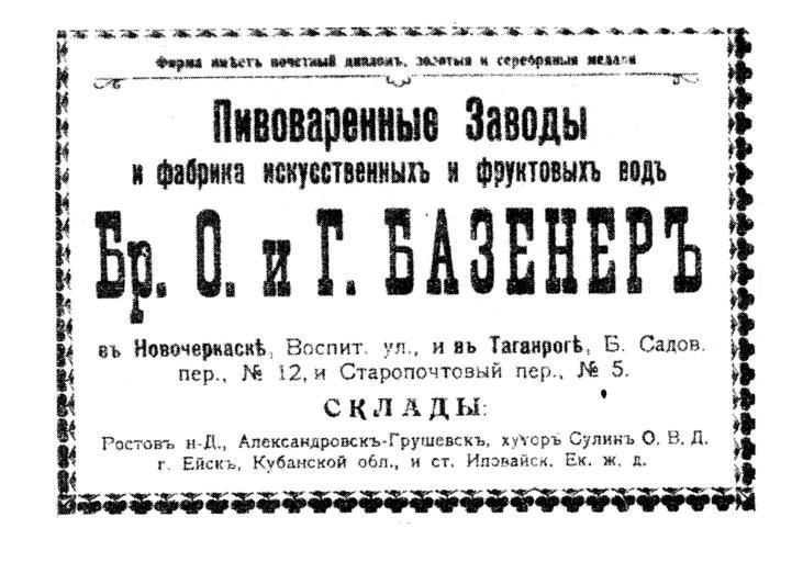 Keywords: Bazener Reklamka.jpg Рекламное объявление Таган огского пивова енного завода I scanned this image from Гав юшкин О П Гуляет ста ый Таган ог Исто ический оче к Таган ог АИ ИК 1997 С 381 ISBN 5-86746-019-3 PD-Russia-2008 History of Taganrog