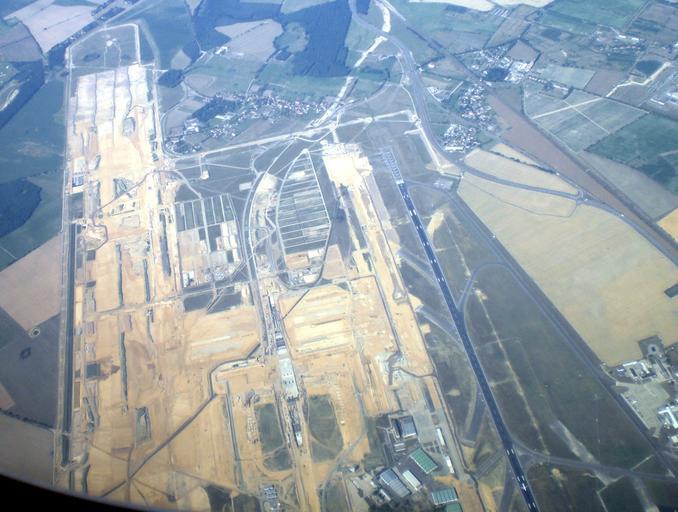 | Keywords: BBI 20080728.jpg de Bauarbeiten an dem neuen Flughafen Berlin-Brandenburg zukünftiger IATA-Code BER en New site of Airport Berlin Brandenburg International BER Germany under construction Old Schönfeld terminal SXF on bottom right side Shot from jetliner own Bukk 2008-07-28 Berlin Schönefeld Airport Aerial photographs of Berlin Brandenburg Airport |