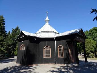Keywords: Bdg cmNSPJ kaplica 8 6-2015.jpg pl Drewniana kaplica na cmentarzu Najświętszego Serca Pana Jezusa w Bydgoszczy 1929 2015-06-11 15 52 08 own Pit1233 other versions cc-zero NSPJ cemetery chapel in Bydgoszcz