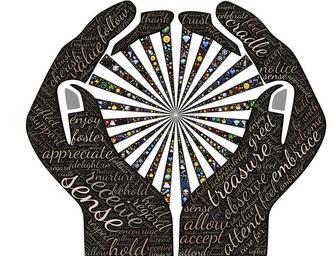 Keywords: be behold emoji symbols radiate tunnel alive awake aware being hands holding attention acceptance allowing feel embrace hold touch sense appreciate non-judgment life love affection happiness joy playful delight consciousness awareness