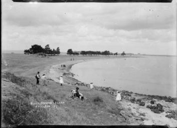 | Keywords: blackandwhite monochrome photo border outdoor black and white View of adults and children at a beach on Browns Island. The woman in the immediate foreground is sitting near the rocky foreshore holding a baby in her arms while children play nearby. Photograph taken by William A Price in early 1900s Inscriptions: Inscribed - Photographer's title on negative -bottom left: Beach. Browns Island. Auckland. 1211. Quantity: 1 b&w original negative(s). Physical Description: Dry glass plate negative 4.5 x 6.5 inches Beach at Browns Island, Hauraki Gulf. Price, William Archer, 1866-1948 :Collection of post card negatives. Ref: 1/2-000496-G. Alexander Turnbull Library, Wellington, New Zealand. natlib.govt.nz/records/22783410 View of adults and children at a beach on Browns Island. The woman in the immediate foreground is sitting near the rocky foreshore holding a baby in her arms while children play nearby. Photograph taken by William A Price in early 1900s Inscriptions: Inscribed - Photographer's title on negative -bottom left: Beach. Browns Island. Auckland. 1211. Quantity: 1 b&w original negative(s). Physical Description: Dry glass plate negative 4.5 x 6.5 inches Beach at Browns Island, Hauraki Gulf. Price, William Archer, 1866-1948 :Collection of post card negatives. Ref: 1/2-000496-G. Alexander Turnbull Library, Wellington, New Zealand. natlib.govt.nz/records/22783410 |