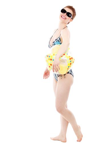 Keywords: beach ball bikini female fun girl happy isolated joy people playing pretty smiling summer swim suit woman young