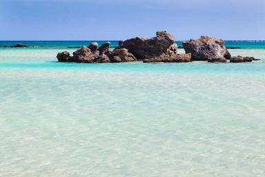 Keywords: beach blue coast island lagoon landscape nature ocean paradise sea sky summer travel tropical turquoise vacation water rock elafonissi