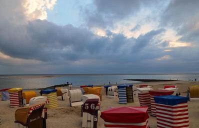 Keywords: beach borkum twilight blue hour lighting clubs atmosphere mood clouds