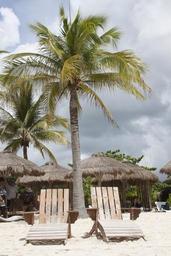Keywords: beach chairs palm tropical ocean sand tourism relaxation leisure palm tree coast sunny relax