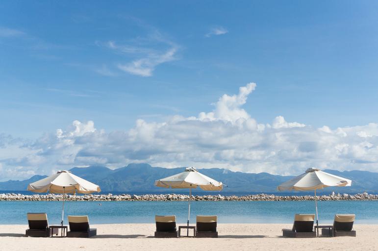 Keywords: beach chairs umbrellas beach sand summer vacation beach umbrella mountain outdoor horizon relaxation shore paradise sunny