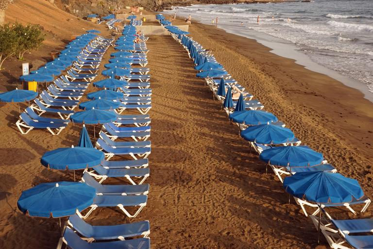 Keywords: beach concerns sun loungers parasols blue sand beach