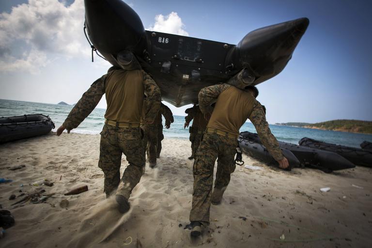 | Keywords: Beach Day (12613618595).jpg Marines shoulder-carry a boat to water during an amphibious operations familiarization drill as part of Exercise Cobra Gold 2014 at Hat Yao beach Rayong Kingdom of Thailand Feb 12 2014 Cobra Gold in its 33rd iteration demonstrates the U S and the Kingdom of Thailand's commitment to our long-standing alliance and regional partnership prosperity and security in the Asia-Pacific region The drills were completed by the joint efforts of Royal Thai Marines with Reconnaissance Battalion and U S Marines with 3d Reconnaissance Battalion 3d Marine Division III Marine Expeditionary Force and the Republic of Korea Marines with 1st Reconnaissance Battalion U S Marine Corps photo by Sgt Matthew Troyer/Released https //www flickr com/photos/marine_corps/12613618595/ Beach Day 2014-02-12 11 18 https //www flickr com/people/40927340 N03 Marines from Arlington VA United States PD-USGov United States Marine Corps Official Page https //flickr com/photos/40927340 N03/12613618595 2016-09-03 22 13 18 United States Government Work Cobra Gold United States Marine Corps in Thailand Rayong Province Cobra Gold 2014 |