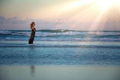 Keywords: beach girl ocean waves vacation sun sunrise travel oil painting