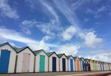 Keywords: beach huts huts sea beach summer sky blue sand wood house building vacations exterior cloud multi traveling holiday seaside devon