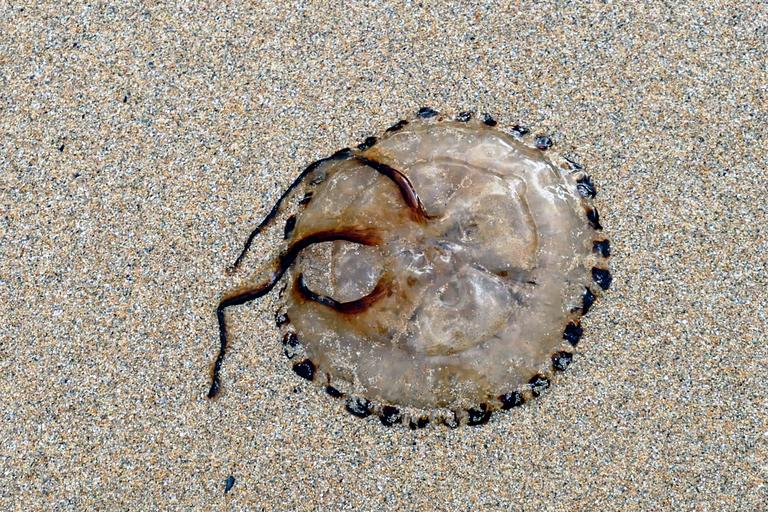 Keywords: beach jellyfish sea sand nature ocean life water jelly beached wildlife marine fish shore creature animal aquatic seashore coast summer organism washed danger brown cnidaria colorful europe seaside invertebrate sealife