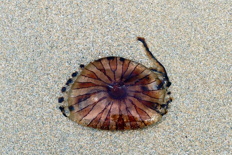 Keywords: beach jellyfish sea sand nature ocean life water jelly beached wildlife marine fish shore creature animal aquatic seashore coast summer organism washed danger brown cnidaria colorful europe seaside invertebrate sealife
