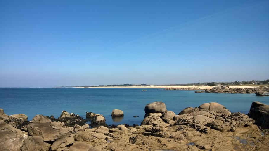Keywords: beach landscape side horizon france brittany trévignon seaside nature sea ocean rock sand