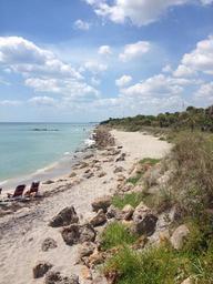 Keywords: beach ocean sand coast travel vacation sunny summer landscape horizon blue sky beach chairs shore florida venice florida