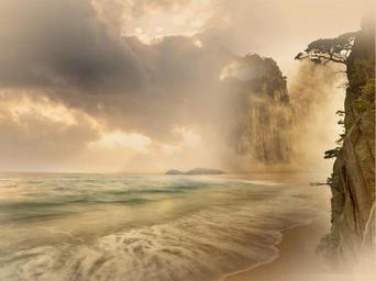 Keywords: beach paradise beautiful beach clouds dream sea rock sky landscape blue sunset water evening sky wave romantic photoshop nature horizon coast rest view wide holidays mood ocean holiday back light travel sand beach cliffs