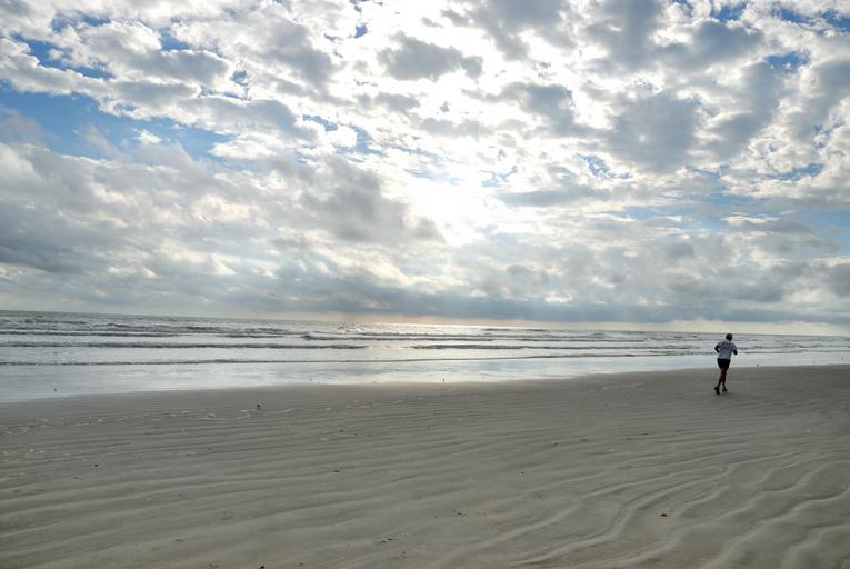 Keywords: beach person jogging exercise florida sand one person alone sky clouds early morning tropical climate people vacation fun lifestyle sea ocean water travel leisure outdoors beach fun
