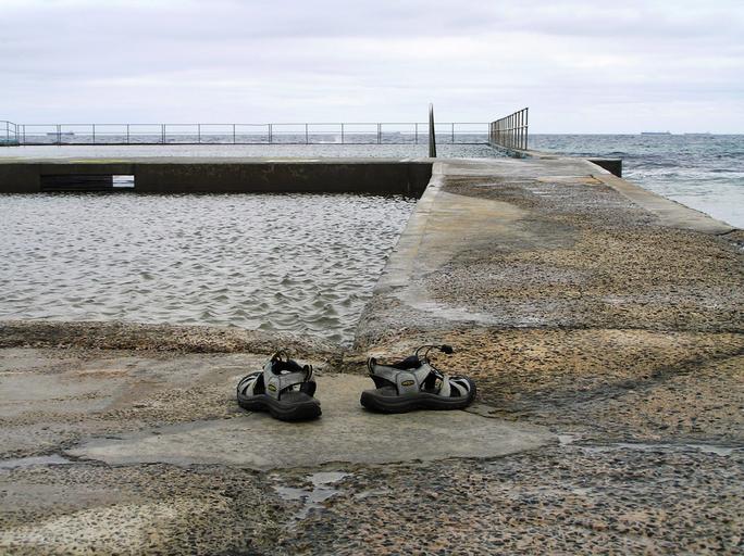 Keywords: beach pool shoes swim water rock cold cloudy concrete textures