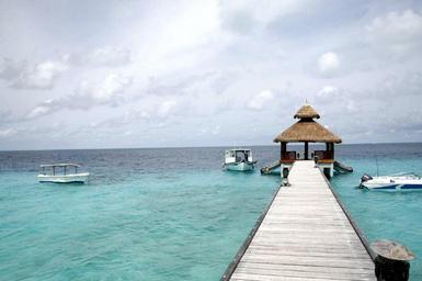 Keywords: beach resort pier ocean tropics baa atoll sea seascape shore boat hut landscape maldives island clouds vacation travel tourism reethi beach resort
