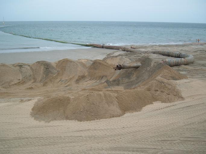 Keywords: Beach restoration device.jpg Beach nourishment device not currently operating in Barcelona Spain own 2006-07-09 Scott Ehardt SCEhardt Coastal management Beaches of Barcelona July 2006 in Barcelona