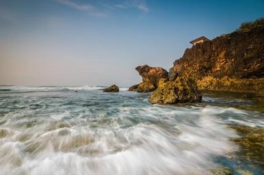 Keywords: beach rush water tide sea ocean cliff coast shore scene