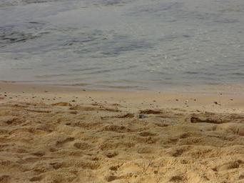 Keywords: beach sand foot prints ocean sea seaside sandy beach