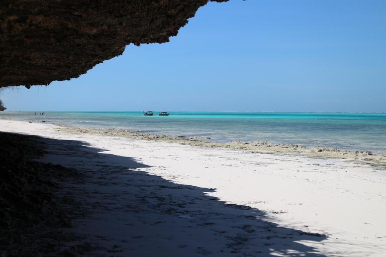 Keywords: beach sand sand beach long-tail boat ship boot sea caribbean south sea paradise holiday summer sun coast ocean zanzibar africa tanzania sandbar turquoise clear cliff shadow