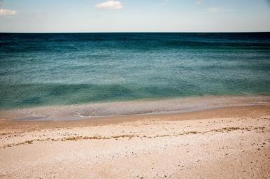 Keywords: beach sand shore water ocean sea horizon