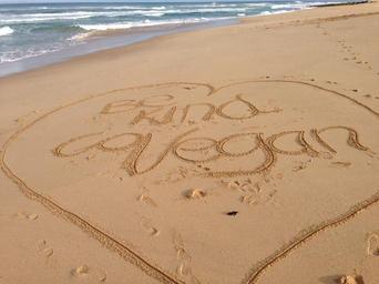 Keywords: beach sand writing vegan